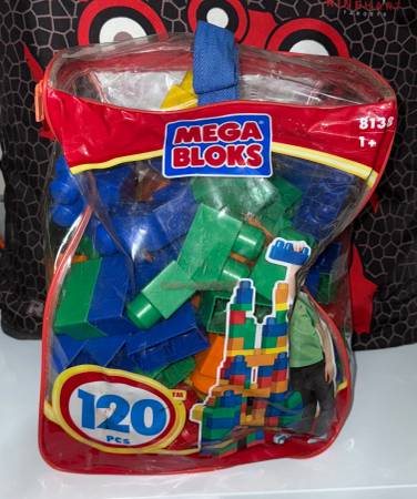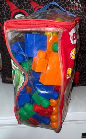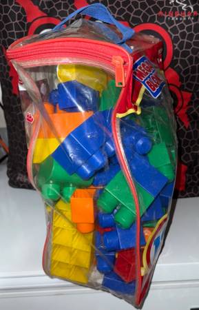 Here is a bag full of blocks, like giant legos. Haven’t counted but the bag looks full.