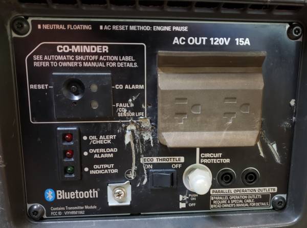 **Unit has heavy signs of wear from regular use. Wear on generator includes heavy scuffs, scratches, paint stains, dirt, dust, and paint chips. Plastic body casing has a crack near handle and is missing a screw. Rubber cover of circuit protector is damaged. Front control panel has heavy scuffs and scratches. Please refer to pictures for item's overall condition.**