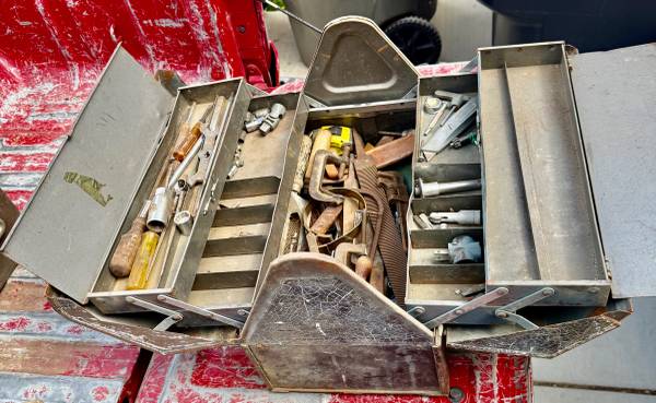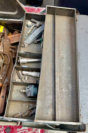 Got this box from a broken storage, so some pieces have light rust but overall good and tools ready to use. Selling cheap cause I have a few boxes for sale.