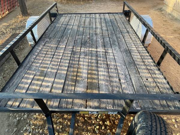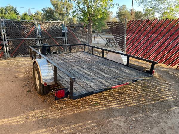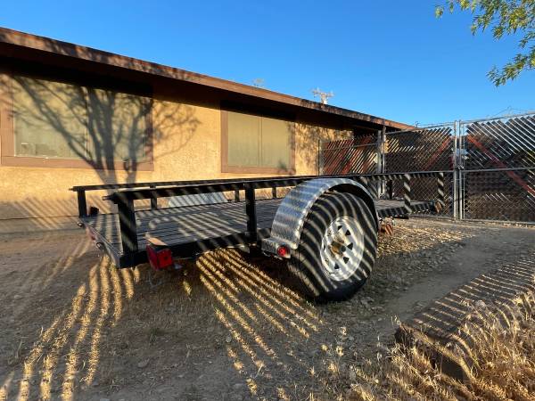 Selling a 2006 10ft x 6ft PJ flat bed trailer, originally purchased in Nevada, guard rails can be removed, no ramps, good tires, good platform, bill of sale, lights work, fits a 2 seater side by side perfectly. Open to trade or OBO, can deliver with deposit.