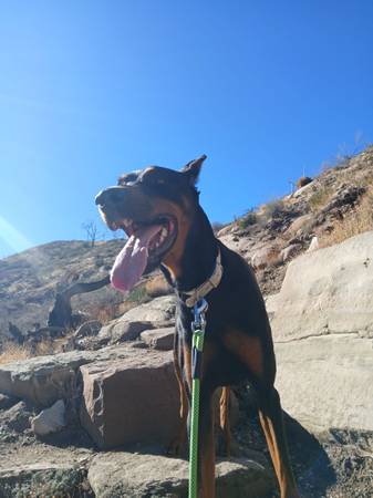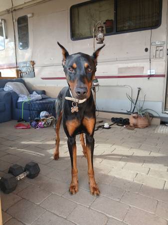 I'm looking for a female doberman for my dog will split the pups when they are born and ready to go I have a a big land so they can know each other out there