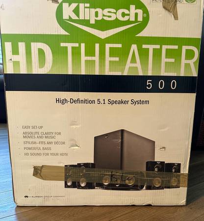KLIPSCH HD THEATER 500 HIGH DEFINITION 5.1 SPEAKER SYSTEM. ABSOLUTE CLARITY FOR MOVIES AND MUSIC • STYLISH-FITS ANY DÉCOR Mint Condition $65.00