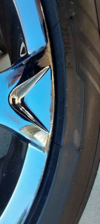 The wheels are in excellent condition. There are a few very light marks and tiny nicks on all four along with one small scrape on one front wheel that is shown in the photos. All four wheels are straight and true. There are three chrome center caps and one silver one, all are in perfect condition.