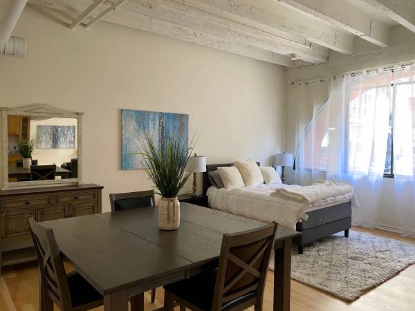 This fabulous loft located in the heart of Downtown in LA's Historic Core. You fall in love with the classic beauty of a historical building, city lights view and the swag of the urban settings. Super high ceilings, massive windows, granite counters, white tile floors, over size soaking tub and personal washer/dryer in unit are yours to indulge, plus the amenities include a rooftop pool, spa, and onsite fitness room.