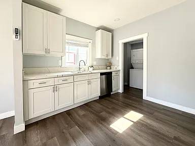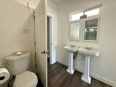 Cozy California bungalow in Jefferson Park, LA, fully remodeled with an open floor plan connecting the kitchen and living room. Includes all appliances: stainless steel refrigerator, stove, dishwasher, and stackable washer and dryer. The bathroom features a double vanity and is designed as a jack and Jill, providing eon-suite access for both rooms. An additional area near the laundry offers potential for an office space or creative uses. Ideal for experiencing life in one of LA's most vibrant neighborhoods.