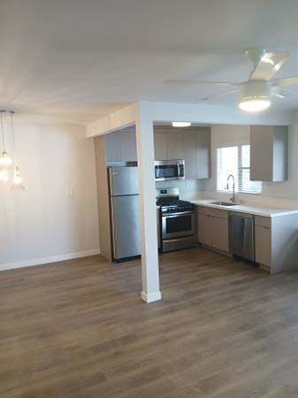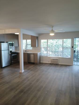 This unit includes vinyl plank wood flooring and custom tile. Recess lighting, 2-panel doors, polished nickel hardware on cabinets and doors. Open Layout Kitchen Dining combo stainless steel appliances, gorgeous quartz countertops. Upgraded plumbing and contemporary cabinetry. Spacious bedroom and plenty of closet with sliding glass doors.