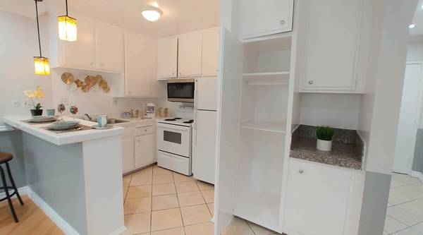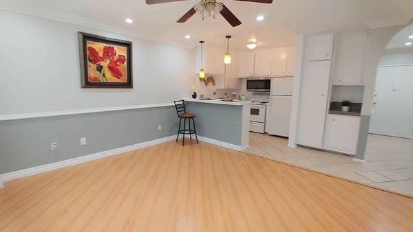 This unit has hardwood floors throughout with an amazing open space leading to the kitchen/breakfast bar. It includes all basic amenities of a stove, refrigerator, and microwave. The unit also has a ceiling fan, and AC unit in the living area. PLUS spacious closet and ample storage space. Our community has an Amazon locker too!