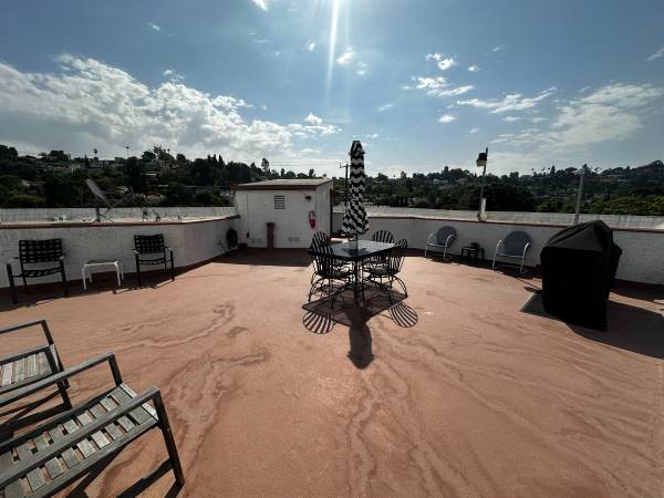 $1,800 deposit, 12-month lease, renter is responsible for electricity and cable. 1 parking space. Elevator, air conditioning and heating, ceiling fans, refrigerator, stove, dishwasher, carpet, hardwood floors, linen closet, balcony, views. Clean, spacious building. Laundry room on premises. Covered parking available. Sorry, NO PETS allowed. Roof top deck with grill available for all tenants to use. Close to Trader Joe's, Gelson's, many restaurants and bars.