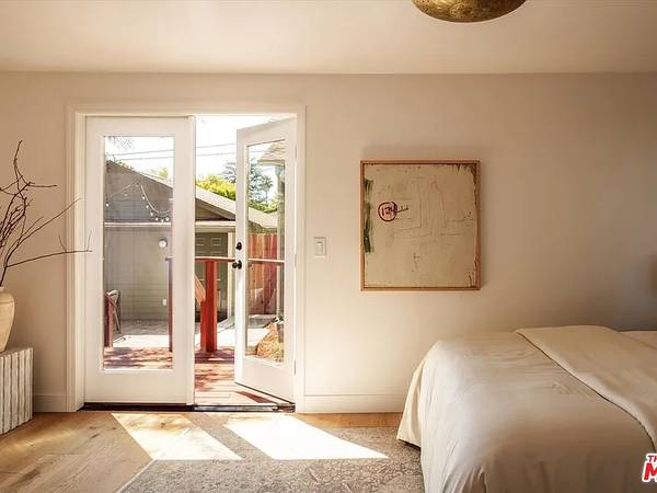 This fully renovated, Prarie-chic residence is a serene sanctuary in the heart of Eagle Rock, two blocks from Trader Joe's and a block from historic Colorado Blvd with restaurants, coffee shops and more! Beyond a French Gothic redwood picket fence, a pathway of hand-cut 1800's bricks takes you through the front lawn with colorful florals and a majestic olive tree. This designer bungalow has an ideal floorplan with 2 separate bedrooms, each with custom bathrooms. Oak floors flow throughout, including a light-filled living room adorned with a 1930s Art Deco marble pendant and vintage built-ins with preserved scrollwork. (Fireplace is decorative.) The dining room leads seamlessly into a fully renovated kitchen, complete with Dolce Vita quartzite counters, hand-painted Portuguese tile backsplash, custom cabinetry, an integrated Fisher & Paykel refrigerator, and a Thor 6-burner range. An office nook off the kitchen offers the perfect corner for working from home.