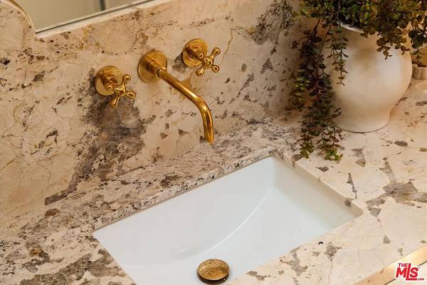 The primary bedroom's en-suite bath has tile floors imported from Italy, a shower wrapped in moroccan Zellige tile, and a custom dual vanity with ample storage and Luminix quartzite countertops. The unlacquered Moroccan brass fixtures and stackable washer/dryer closet complete this bathroom.The second bedroom is spacious with its own striking bath, featuring black-and-white checkered marble floors and bold color-blocked tile walls. From the primary bedroom, the backyard unfolds as a serene oasis with a vintage stone fountain, lush plantings, a brick patio ideal for alfresco gatherings and a new Brazilian Batu wood deck.It also includes a 2-car garage. Welcome home!