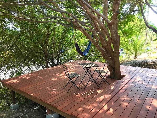 Large shaded deck for relaxing outdoors