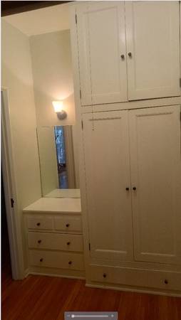 Just across from the bath is and actual walk in dressing room, nicely lighted and mirrored with the original built in cabinetry for your make up and other haberdashery.