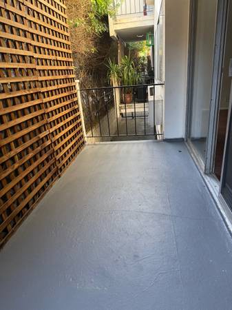 Renovated with wood floors large balcony dinning area with AC full kitchen with stove and fridge