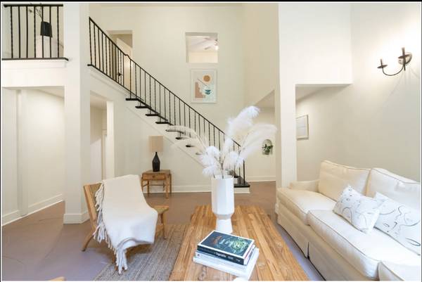 3-level townhome with a beautiful staircase. Our refined apartments are located in a historic Hollywood building originally built in 1925. While the exterior pays homage to its rich past with a classic brick facade and a beautifully landscaped courtyard, the renovated interior boasts brand-new appliances, vintage-style fixtures, hand-crafted built-in shelving, and flooring throughout. Outside, the courtyard is a private oasis with plush lounge seating, a cozy fire pit, and a BBQ area perfect for hosting gatherings.