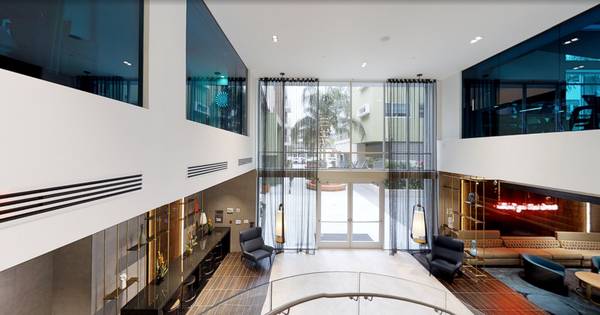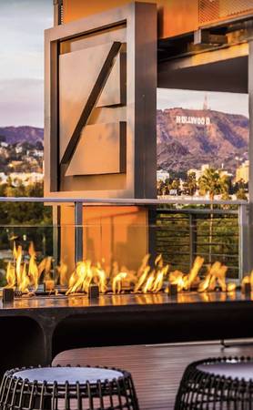 - Lounge with view to the Hollywood sign and Griffith Observatory