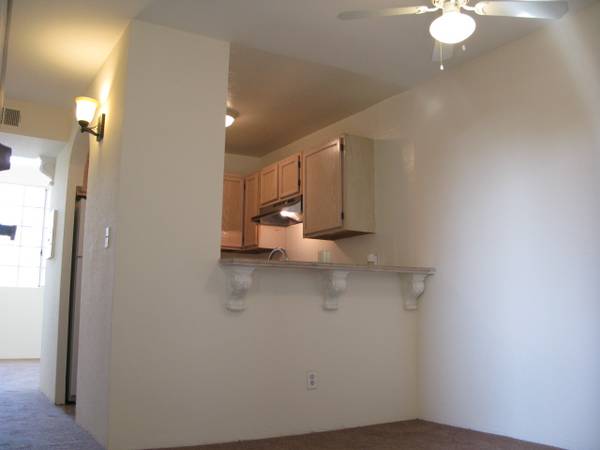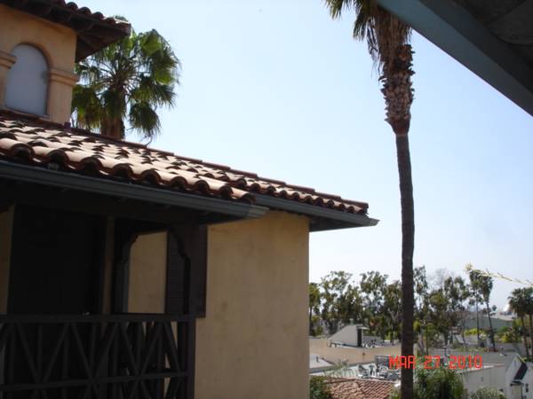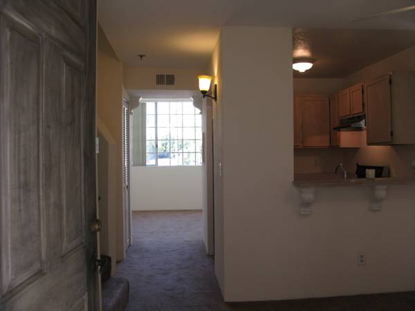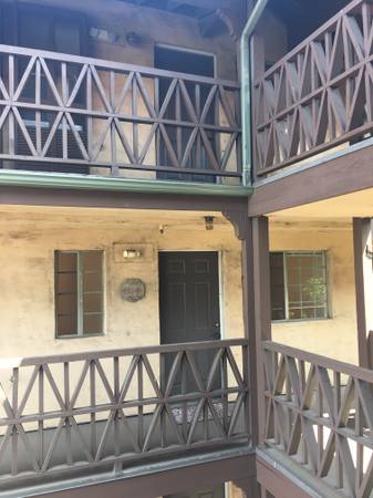 Description: huge clerestory window Unit! Over 20’ ceiling! 1st and 2nd story Unit with additional 1/2 Bath downstairs. 2 Levels. Coat closet downstairs. But Smaller bedroom Closet floor plan, yet same volume as our 2 bedrooms. Be creative with an armoire? Bedroom fits Queen sized bed, dresser and lamp table. Some partial views. Outdoor catwalks . Elevator property. Spanish Tile Courtyard is elevated 1 level above street, Fountain Gardens, lush gardens, and more. These 1 bedroom units rarely come up for rent!