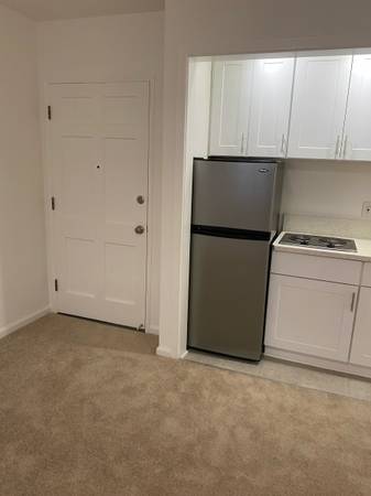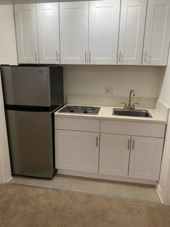 Single Unit apartment in small 20 unit building. Newer remodel. Electric stove top, sink, and refrigerator in the kitchen. Bathroom has glass shower doors and new toilet, sink, and medicine cabinet. New carpet! Brand new AC too! Pets allowed. Backyard community table and chairs.