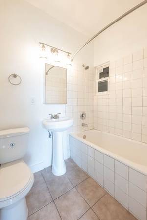 Quaint four-story brick building with secured entrance located in Koreatown. Stylish studio apartments offer natural lighting along with tiled floors, and fully equipped kitchens. Community laundry facility on premises. Our community is 1.6 miles from MacArthur Park, easy freeway access, and walking distance to an array of restaurants and shopping. One pet limit per household with a $400.00 pet deposit and $50.00 monthly pet rent. This community has street parking only.. Newly renovated studio apartment with fully equipped kitchen in a historic four story brick building.