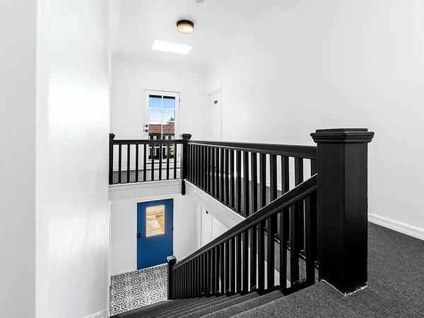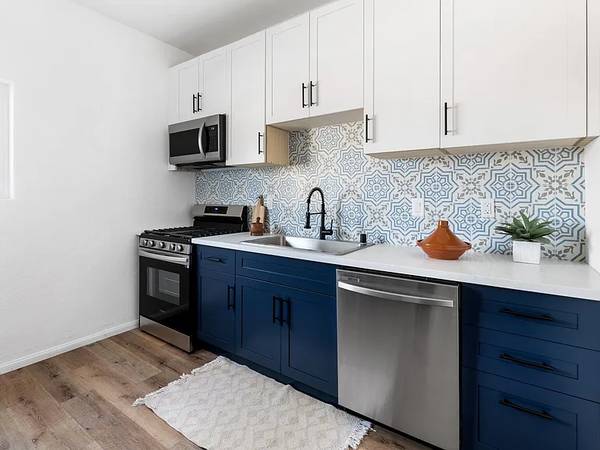 A remodeled 1930s Spanish-style boutique property near Culver City, featuring an upper-level unit with vaulted ceilings and modern amenities. Designed by an in-house architect, the apartments include a vintage kitchen back splash, colorful cabinets, in-unit washer/dryer, and bright bathrooms. The large living room accommodates both leisure and workspace. Residents benefit from remote-controlled cooling and heating systems and easy access to the Expo light rail line. The property also offers an outdoor garden space, fostering a sense of community.