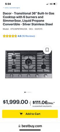 Box complete cooktop gas range DACOR w 36 - $1,499 (Baldwin Park)