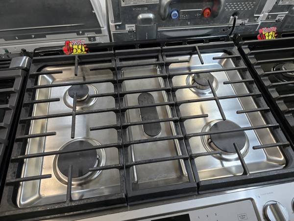 Width 30 inches 5 burner Convection oven Self clean Gas Used Call or text message 95 1 3 70 :3/:12 3 3 month warranty parts and labor covered Same day delivery and install available