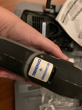 Includes dremel, charger, a bag of misc bits, user guide, and carrying case. A bit dirty but it works great.