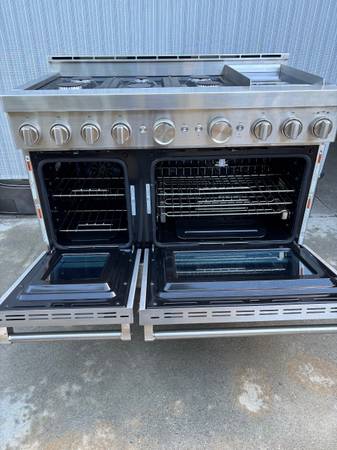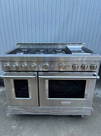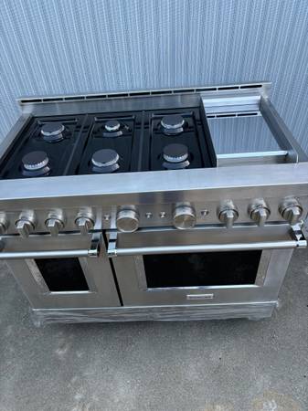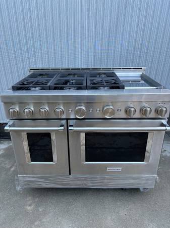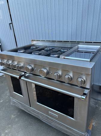 Kitchen aid range 48 inches all gas 110v, six burners and griddle tow ovens everything in perfect working condition.