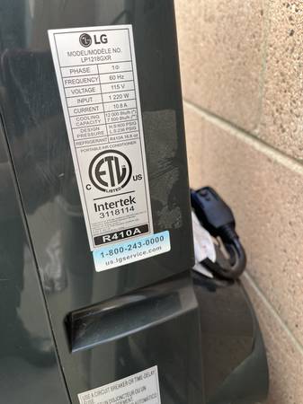 LG 12000 BTU portable air conditioner Model LP1218GXR Works well. Includes hose and window attachment. $125 FIRM