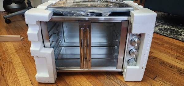 Elite Gourmet ETO4510B French Door 47.5Qt, 18-Slice Convection Oven 4-Control Knobs, Bake Broil Toast Rotisserie Keep Warm, Includes 2 x 14" Pizza Racks, Stainless Steel Low ball offers will be...