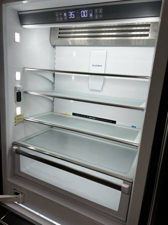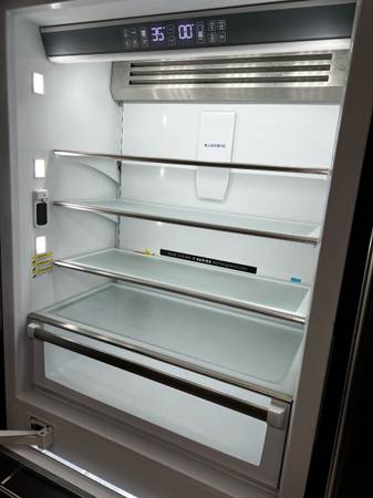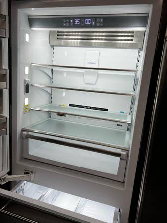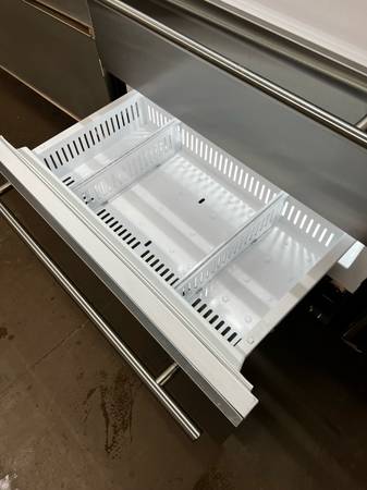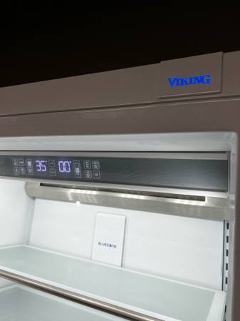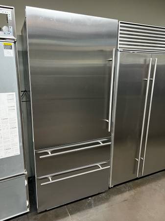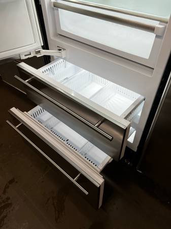 Viking 36” stainless steel built in refrigerator Panel ready stainless steel panels come off Double bottom drawer freezer New condition Ice maker inside freezer Freezing and cooling excellent Fully...