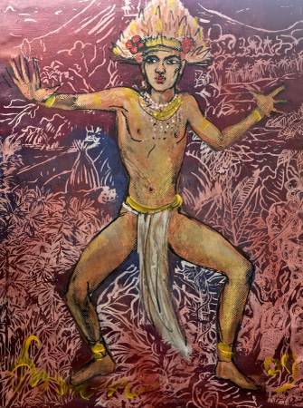 These paintings are priced at well below what he sells the work for in his studio in Bali. I negotiated a super deal directly with the artist, as he wanted representation in Los Angeles, so he offered me silly prices, that would be passed on to you. Also, I had the work stretched at about half of what any collector would have paid, since I do a large volume of work with my framer. All of the stretchers were custom made, and are very high quality. The canvas is also high quality. These are original silk screen paintings, that are hand painted, and signed by Symon. The realistic retail value is 5-10 times the cost of the work. So, there is a real opportunity here. No scammers please. Cash, paypal, MC, or Visa only. For more info reply to this posting, or call Mark at (323) 792-3779 or 626-664-2060. The collection is gorgeous, and can be seen near downtown Los Angeles. Born in 1947, in Detroit studied at arts and craft. Then on to lower east side NYC with Allan Ginsburg. Went to the academy Bella arts ROME under mystro Amelia Greco moved on to Tibetan wood block in Nepal. Opened Zees Gallery in Soho, on West Broadway, in 1973. He now creates international shows from ART ZOO in Ubud Bali-Indonesia. Before setting up his gallery in Bali, Symon had a great deal of success with his gallery on West Broadway, in New York, and with his presentations in the Camden Passage, in London. Prior to that, many travelers bought their first print from Symon’s printshop in Kathmandu, Nepal. Symon has work in the permanent collection of the Nekka Museum, which is the most prestigious art museum in Bali. He is well known, highly regarded, and very talented.