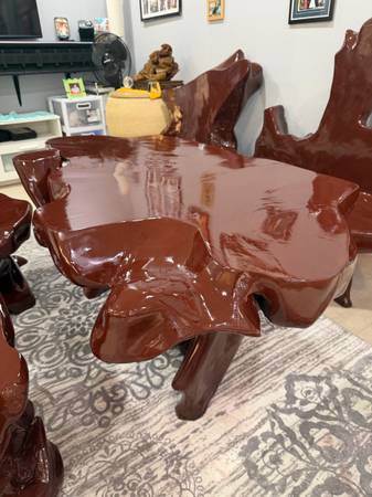 A complete coffee table set with one love chair & 3 single chairs have red wood . Antique & modern look.