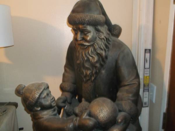 STUNNING & Very Large 43" TALL X 24" X 24" "BRONZE FINISH" Durable RESIN STATUE "SANTA & CHILD" CHRISTMAS STATUE.