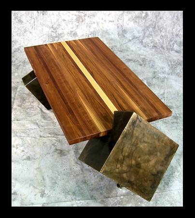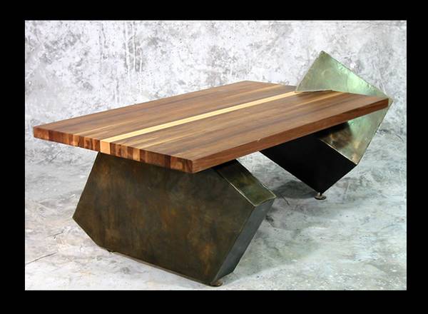 THREE-POINT TABLE — Steel, Walnut and Oak — 4.7’L x 2.5’W x 1.5’H