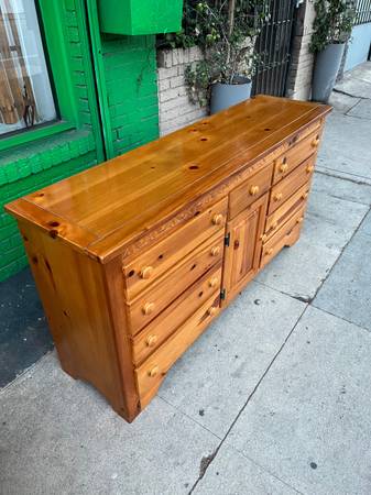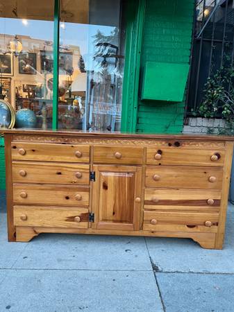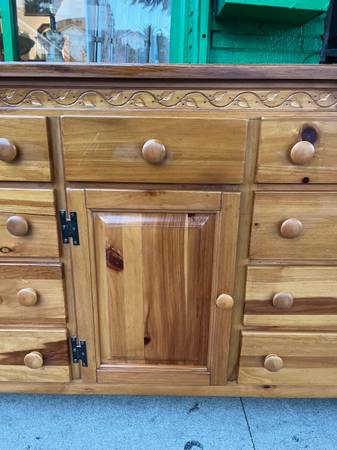 Hello. I’m selling a vintage pine dresser with 12 drawers. It was handcrafted in Virginia and is well made. It measures 68 w x 34.5 tall x 18 deep. Local delivery available for small fee.