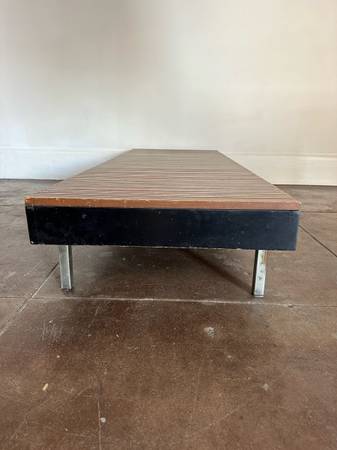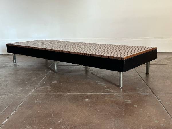 Mid century walnut and chrome low profile bench in good vintage condition.