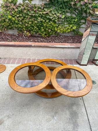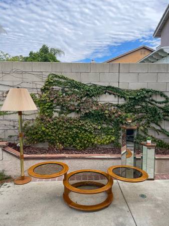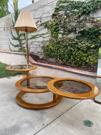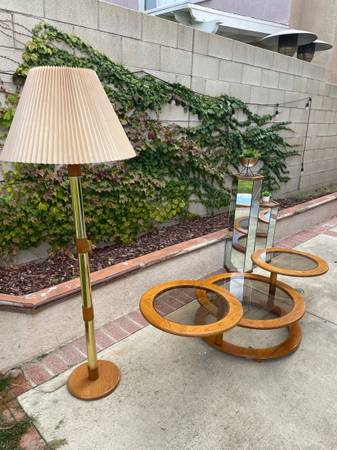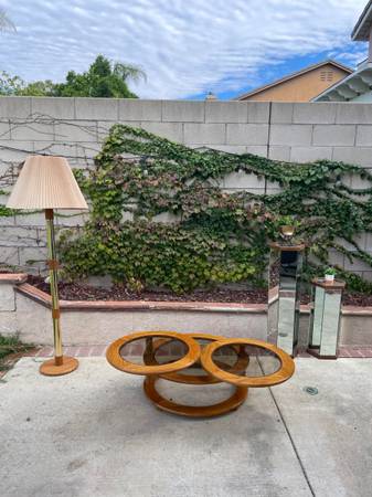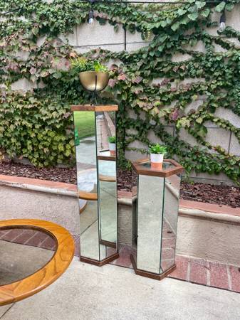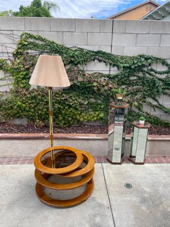 Swivel coffee table $699 Floor lamp $175 Mirror hexagon planter stands $275 for the set of 2
