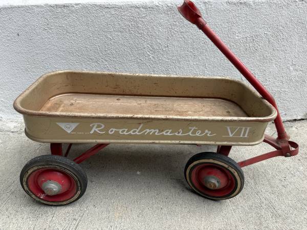 AMF Roadmaster VII vintage pull wagon…. Great condition for being from 1960’s. Beautiful patina. Photos of actual wagon.