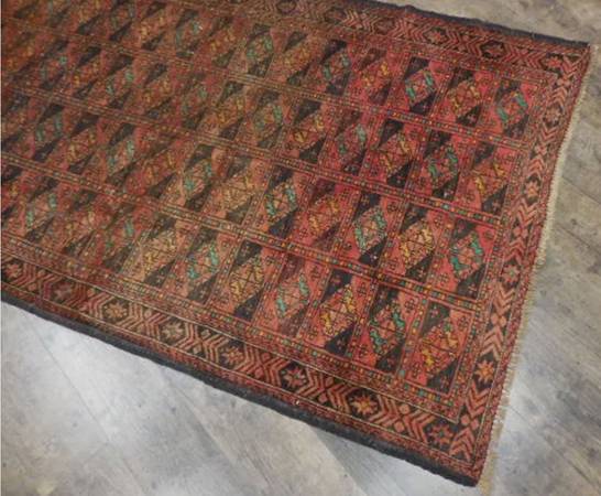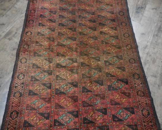 Handmade Middle-Eastern Wool Rug with Geometric pattern Probably 1930s-40s, using natural dyes. 3.6 x 6.3 ft Very nice condition Probably Persian or Turkish.