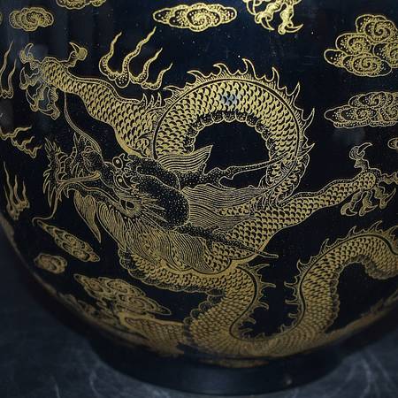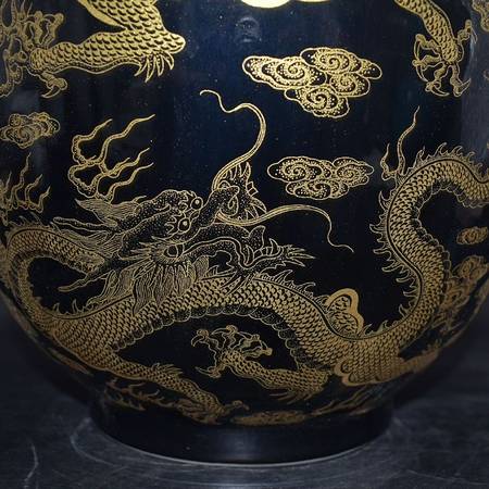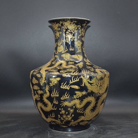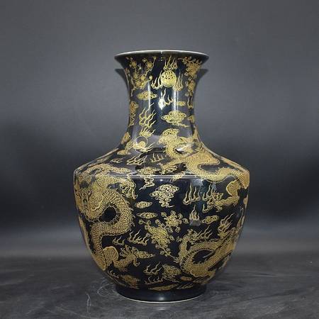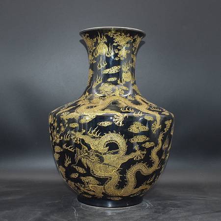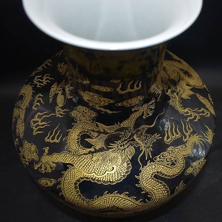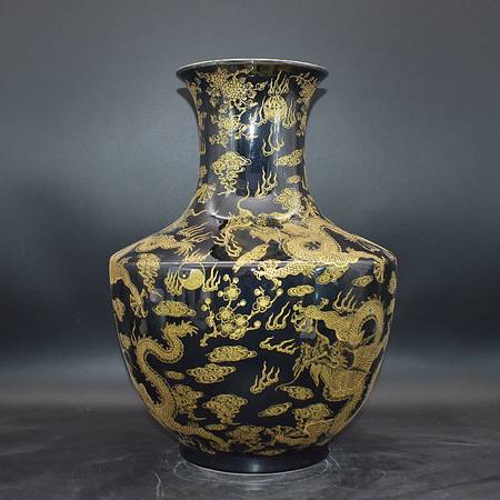 A treasure from the Qing Dynasty official kilns, this black gold glaze with gilded dragon motif exudes elegance and refinement. A rare Chinese antique porcelain found overseas, a perfect choice for...