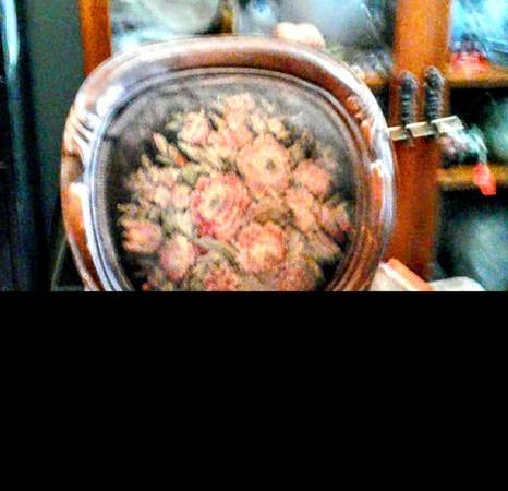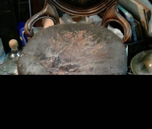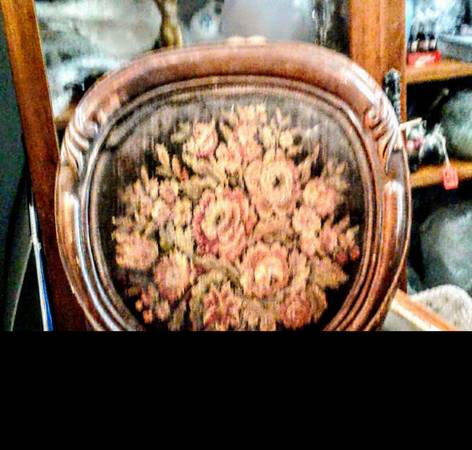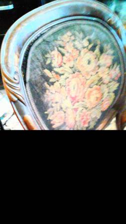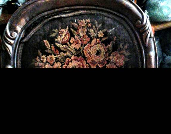 If u r interested, please contact. I bought this at an estate years ago. I was going to retie the springs and; Recover seat with black chenille (I may still do it so I can use it again). Original finish and tapestry on the back oval, seat is 23 inches, cabriole legs, seats low to the ground. I am sure this was meant for a lady to seat with skirts. The oval seat is 23 inch wide X 21", oval top is 21 X 22 inch, original tapestry,on the back is plain black, solid frame original finish. 17 inch high seat. Overall 37 inch high.