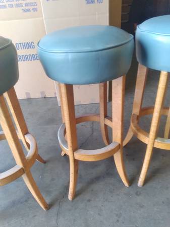 for sale is this set of 4 vintageb londe wood stools. Burled or birds eye maple. $200 obo vintagemodarc