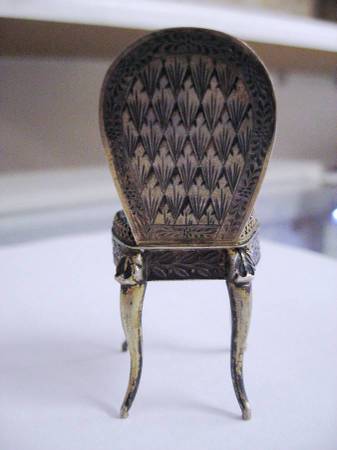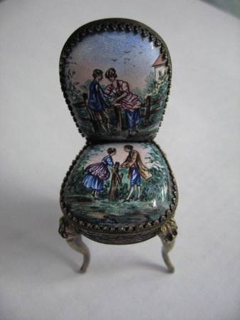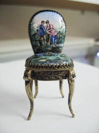 For Sale Vintage Viena Doll House Enamel Miniature Chair. In Excellent Condition. No shipping. Local pickup only. Cash only. No other forms of payment are accepted. Please, call (Voice), Text