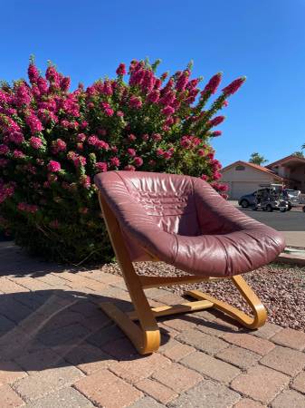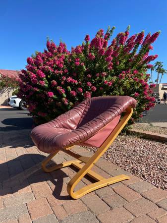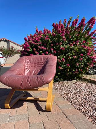 Style of Ake Fribyter for Nelo vintage armchair model ‘Kroken’ / Swedish Sling Lounge mauve pink chair