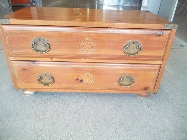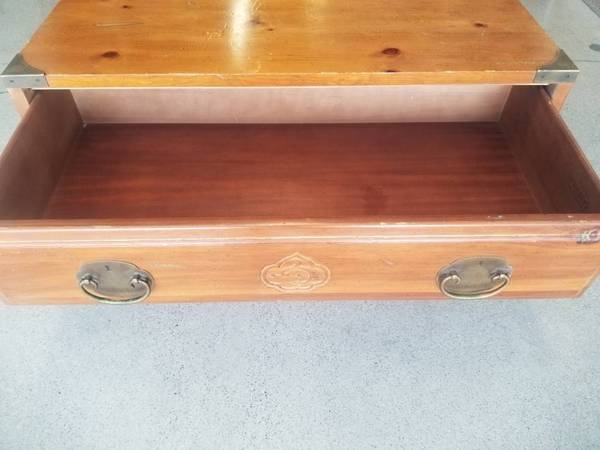 Vintage, antique, brass and pine, original condition unaltered, in brown