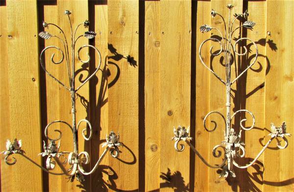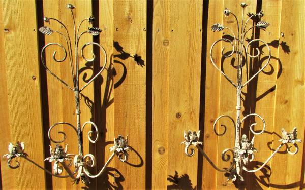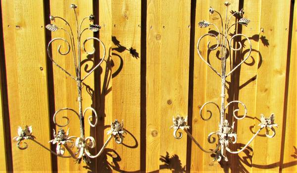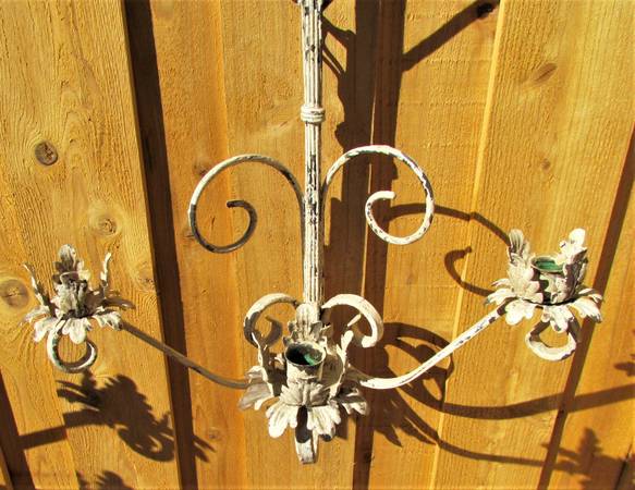 1920s French Style Metal Cottage White Floral Wall Candelabra lamps...