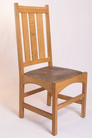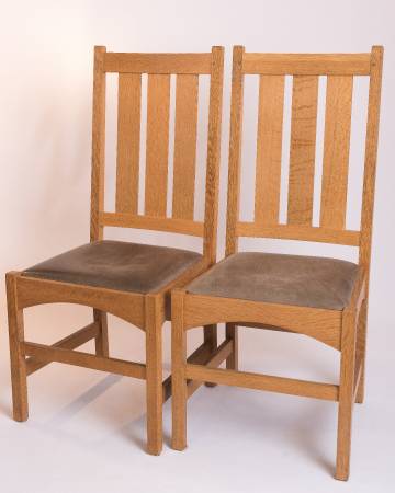 2 Arm Chairs $900 each, 4 side chairs $450 each (sold only as a set) or $3500 for all six chairs All solid quartersawn white oak in rare natural finish. Impressive build quality and craftsmanship by Warren Hile Studios. Additional photos available. Prices are firm, cash only please