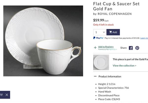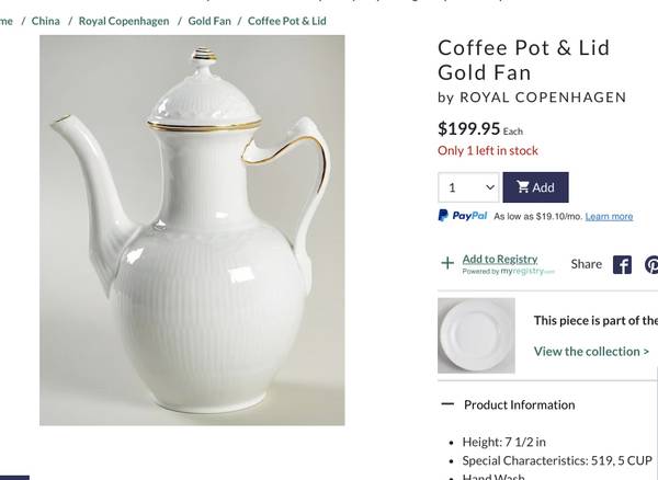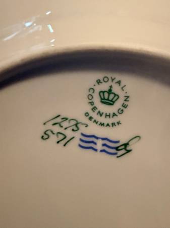 ROYAL COPENHAGEN Featuring a classic white design with a luxurious 24K gold trim, this set is perfect for any occasion. Eight complete five piece place settings , serving pieces, coffee and tea...