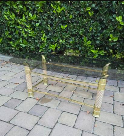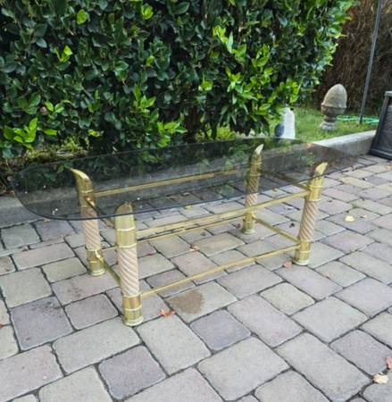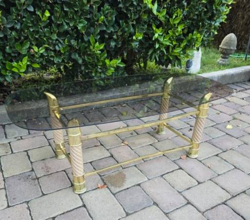 Vintage Tommaso Barbi Style Black & Gold Faux Tusk Horn Glass Top Tables art deco 80s style Italian Faux Tusk Brass & Glass Coffee Table Light weight Some knicks on glass, please refer to...