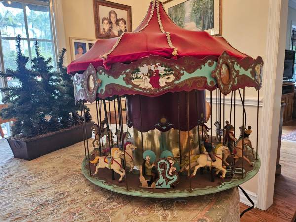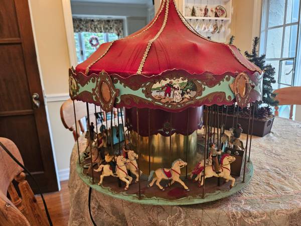 Wonderful merry go round. Needs some tender loving care. In working condition. Great for Christmas.